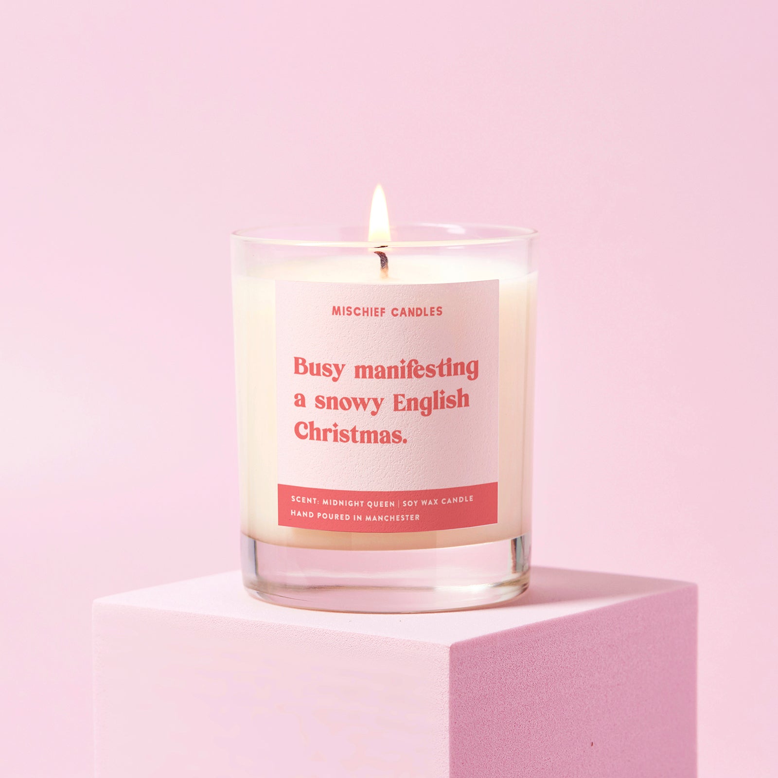 Manifest white Christmas vibes with this cheeky scented candle. The ultimate cosy and funny Christmas gift for dreamers and festive besties.