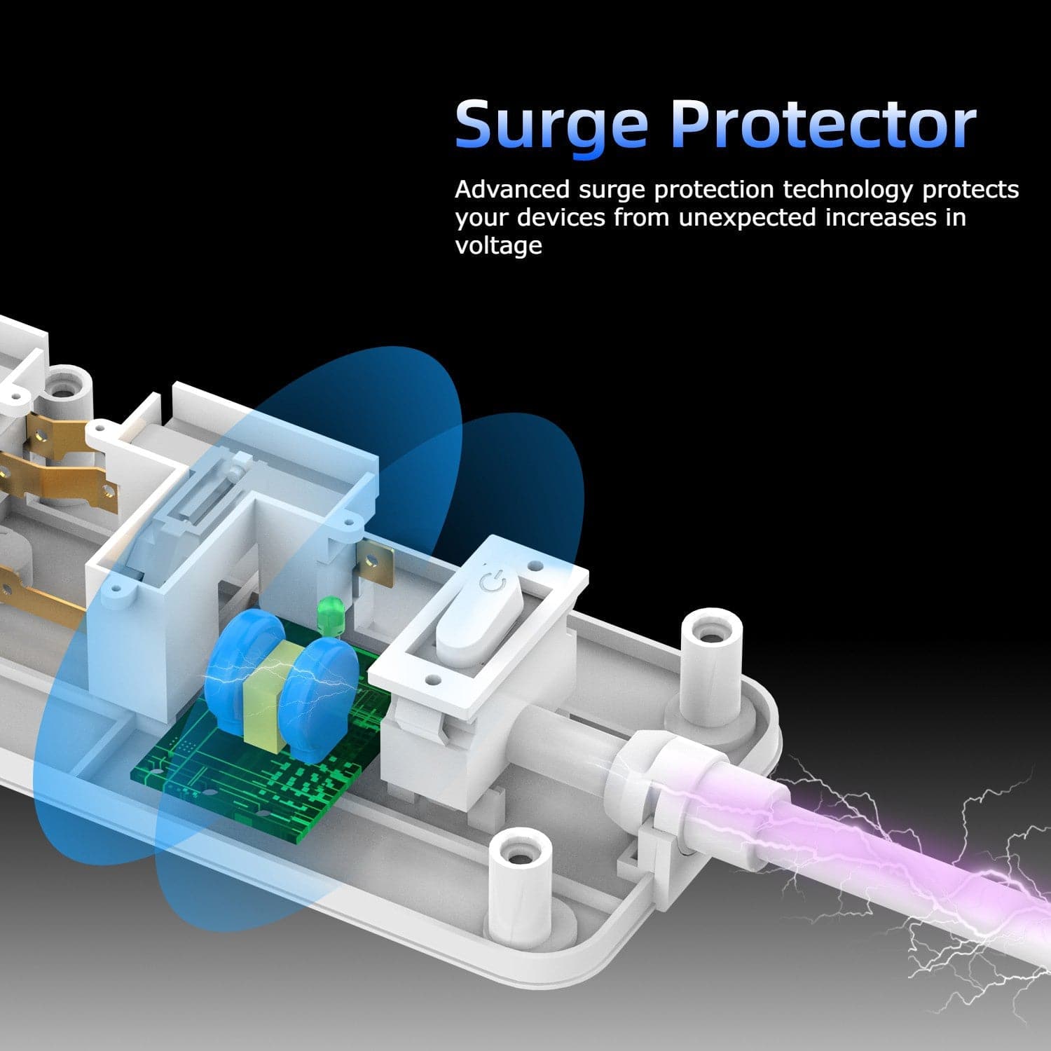 Extend the reach of your power cables with this Maplin 2m 4-Socket UK Power Switch Extension Lead with 3x USB-A / 1x USB-C Ports. 4 UK power sockets gives you all the options your home or office needs, and the USB-A and USB-C sockets allow you to charge your portable devices as well. Surge protection helps keep your electrical equipment safe from an unexpected increase in power. An indicator lights shows when you're protected. The extension lead measures 2m and features a power switch for when not in use.