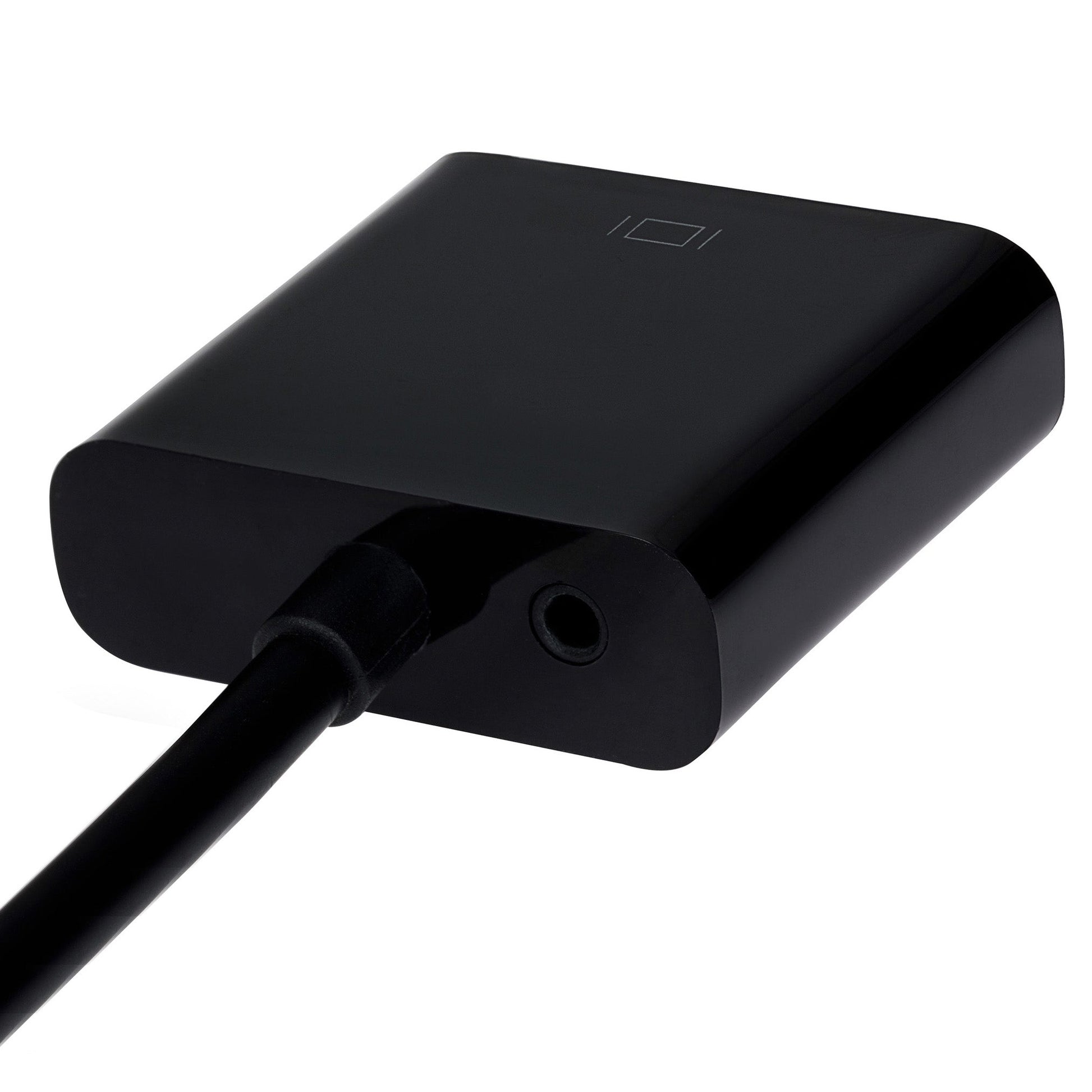 Use the HDMI to VGA Female with 3.5mm Audio Jack Port Adapter for connecting a desktop, laptop, or other devices with HDMI port to a VGA display such as to monitor, projector or TV. Connect the HDMI male end of the converter to the HDMI port of your HDMI device, and connect the VGA female end to your VGA cable from the display. The 3.5mm audio port adds the audio to the HDMI, eliminating the need to run a separate cable.
