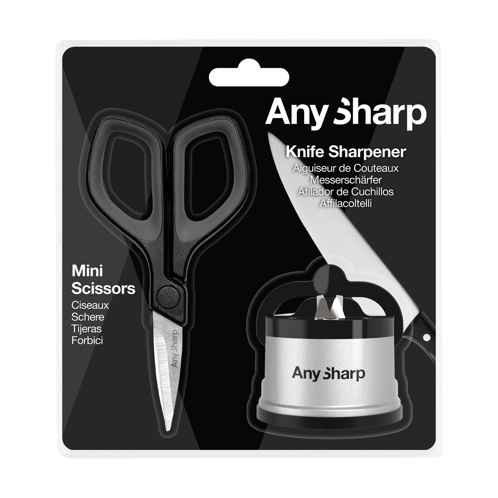 This versatile bundle includes the AnySharp Classic knife sharpener and high-quality Mini Scissors – two essential tools for everyday use in the kitchen, home, or garden.