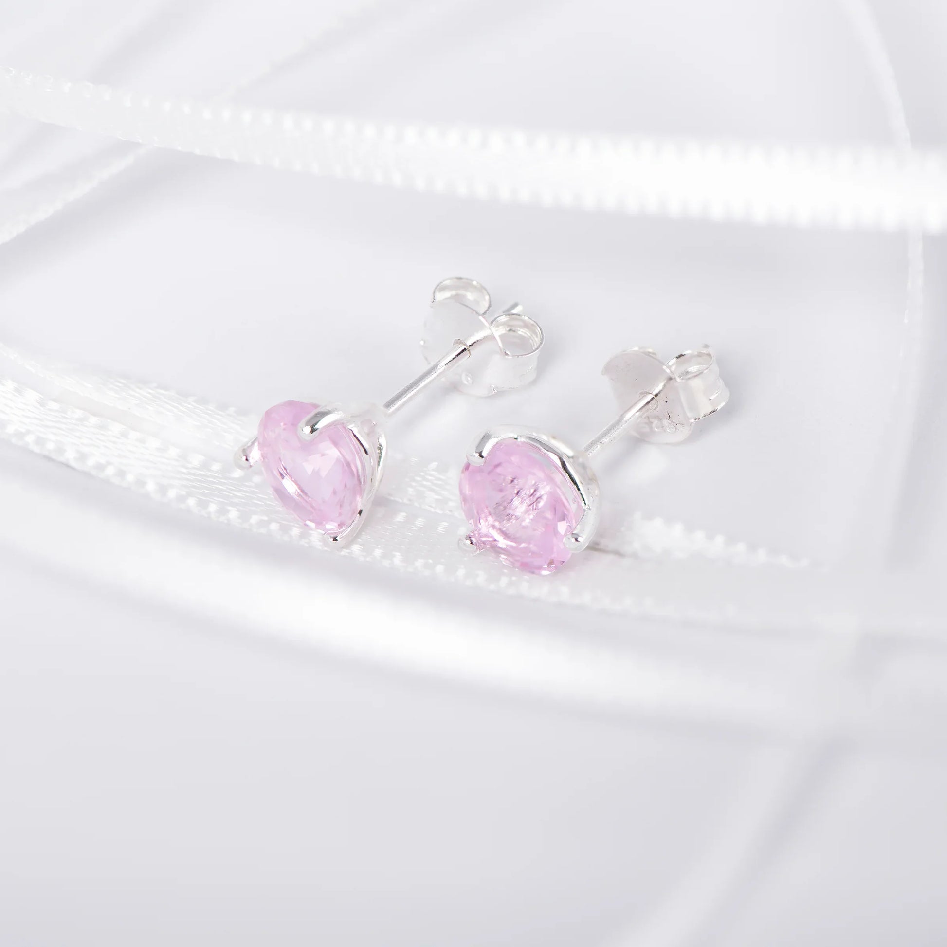 Our October birthstone stud earrings. Made from 925 sterling silver and featuring gorgeous pink tourmaline Cubic Zirconia stones.