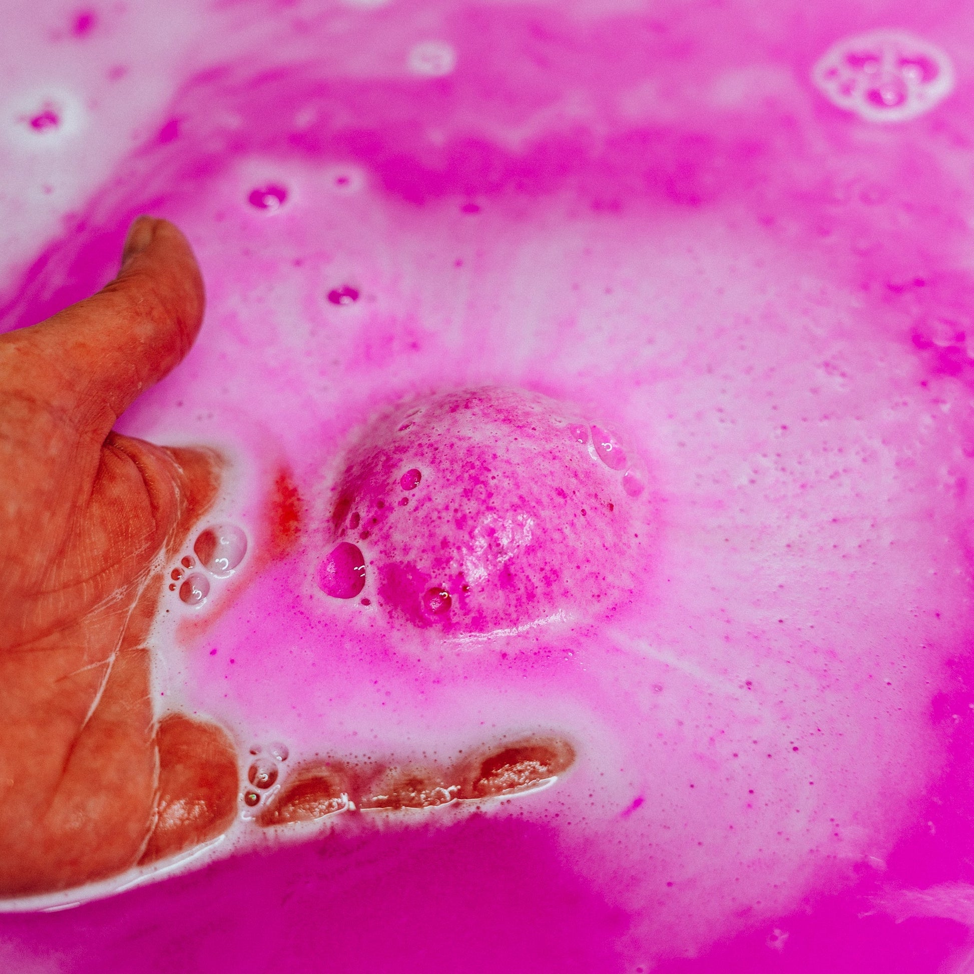 A bright pink fantasy wrapped up in one, La Vie Est Belle inspired bath bomb, it’s a floral fantasy that smells like jasmine, orange blossom, blackcurrant and pear with floral hues. It’ll nourish your skin and provide you with a luxurious bathing experience.