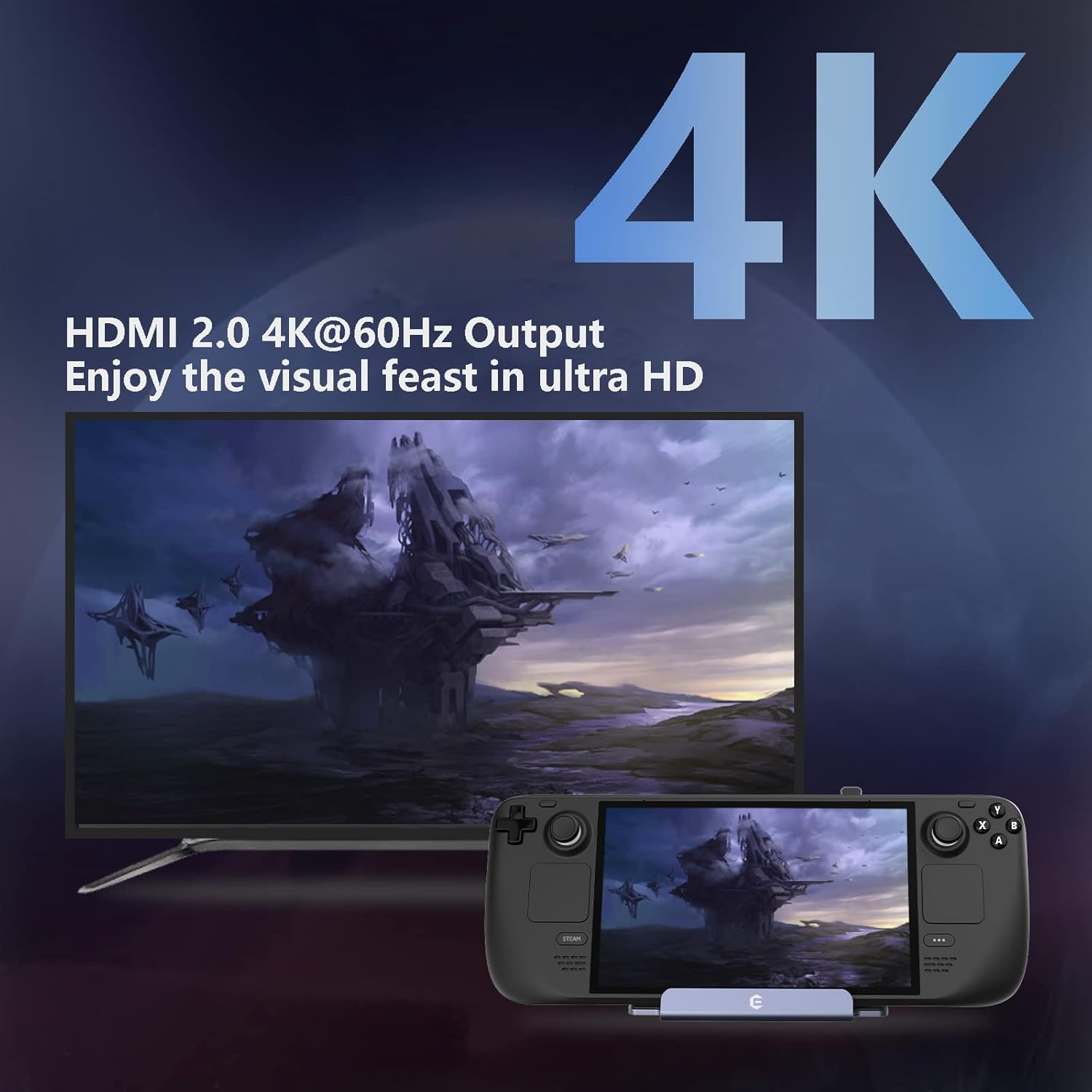 - 4K@60Hz HDMI 2.0: After upgrading, the Steam Deck dock can reach 4K@60Hz, not only sync ultra clear games from the Steam Deck to your TV or monitor. But also improve the number of frames, making the picture quality smoother. Overall this gaming dock station provide sharper and smoother visual experience, so that you can enjoy cinematic visual gaming experience.