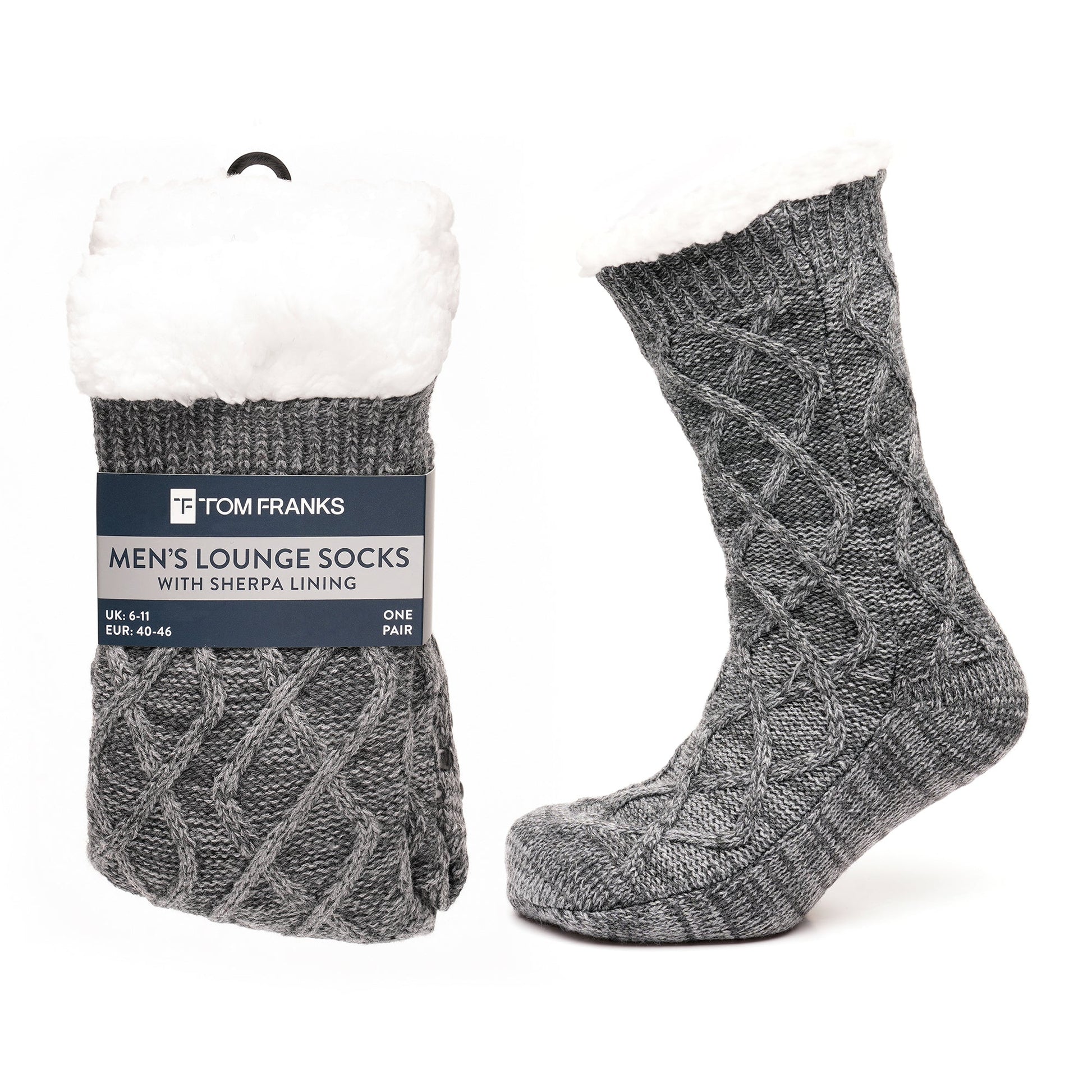 Keep your feet warm and cosy with Tom Franks 1 Pair Chunky Knit Sherpa Slipper Socks, available from New, Used and More. Crafted with a soft chunky knit exterior and a plush Sherpa lining, these socks offer ultimate comfort and insulation for chilly mornings and evenings.